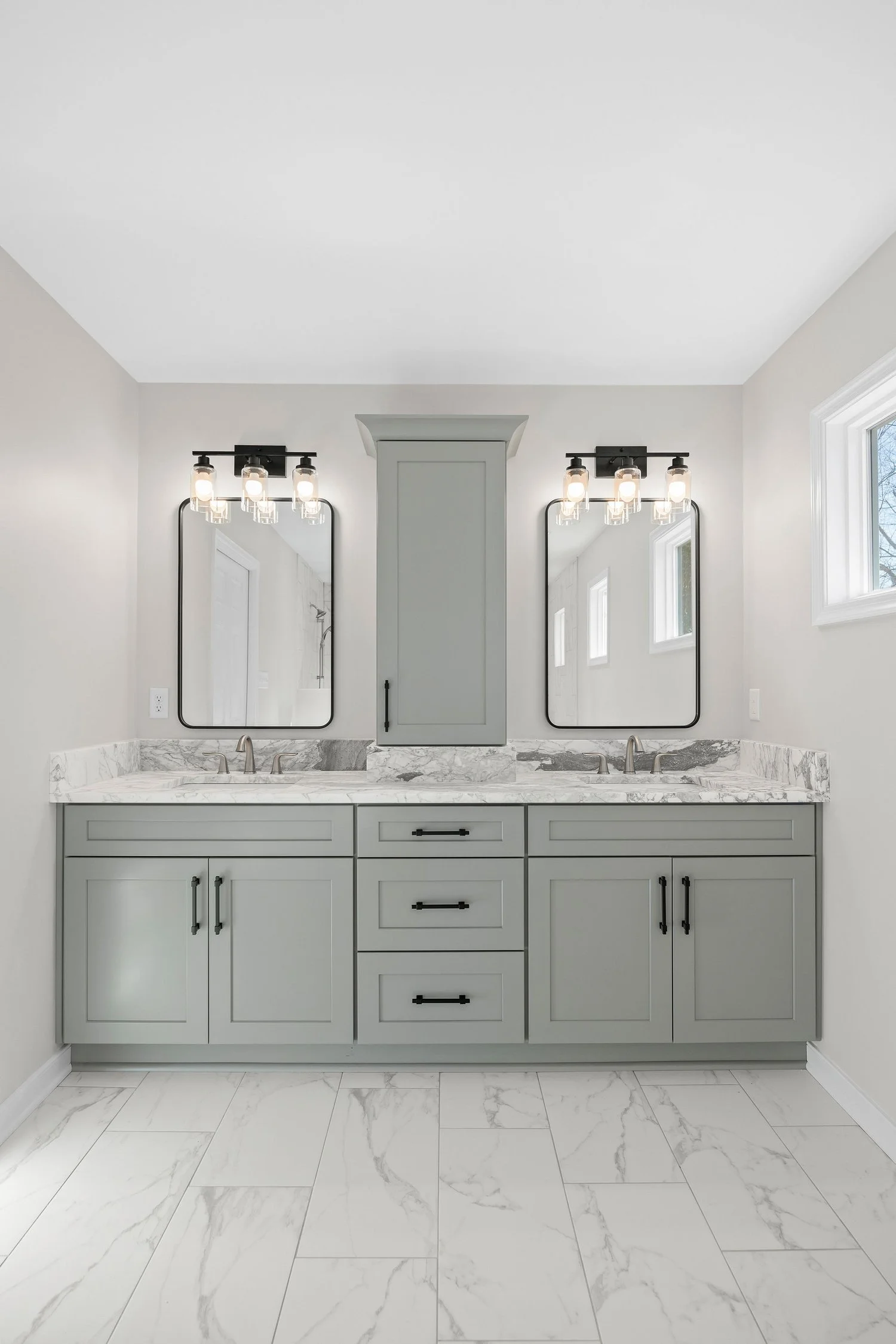 In this transformation, the dining room was reimagined as a spacious primary bedroom, creating a tranquil retreat. To complement the new bedroom, a luxurious first-floor primary en suite bathroom was added, enhancing both functionality and comfort while maintaining a seamless flow within the home.